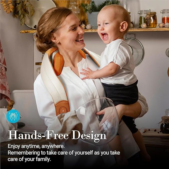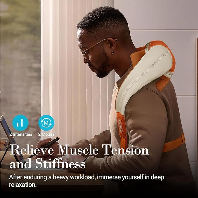 - 4D HAND-LIKE MASSAGE DESIGN:Upgrade your relaxation with our advanced neck and back massager. Featuring 4D kneading technology, it mimics deep human-like massages across a wider area from neck to shoulders. Engineered with 6 ergonomic nodes, it delivers powerful and continuous comfort to your neck and shoulders.