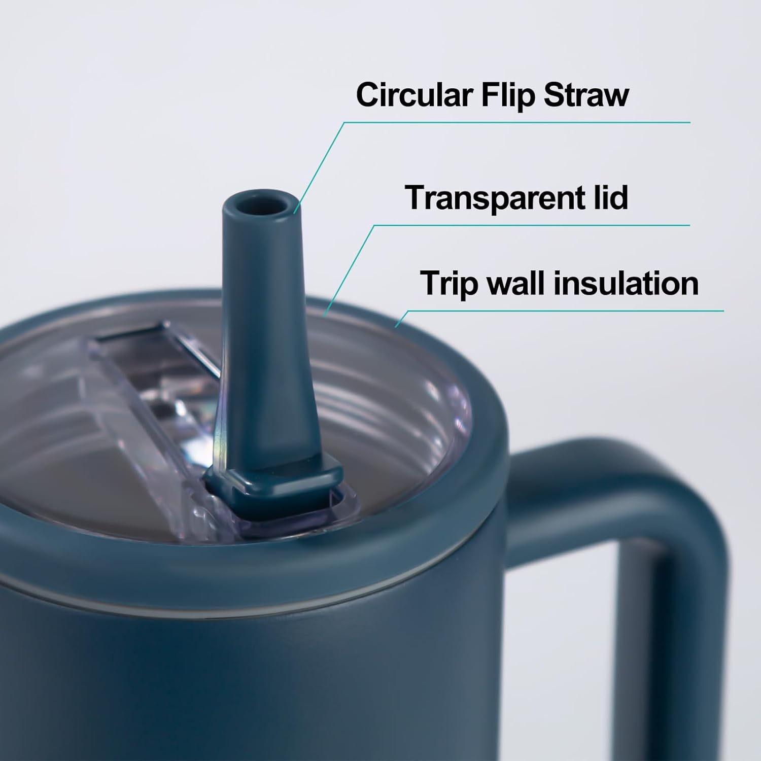 40 oz Insulated Tumbler with Handle,Flip Straw,Lid & Rubber Base Stainless Steel Water Bottle - Leak Proof Vacuum Insulated Mug BPA Free Reusable Travel Cup Gifts for Women/Men (Darkblue 40oz)