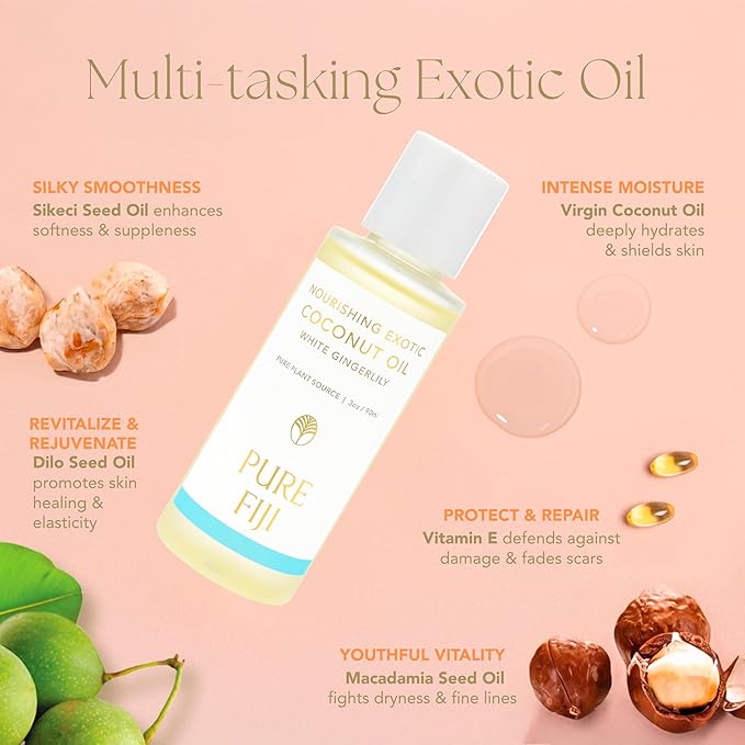 PURE FIJI Travel Size Nourishing Exotic Coconut Oil, White Gingerlily (3oz/90ml)