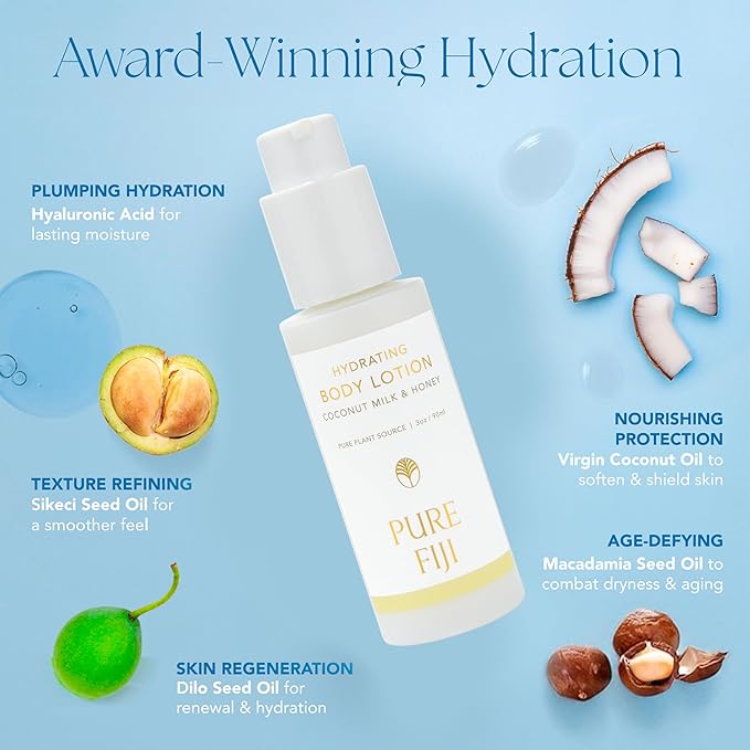 PURE FIJI Hydrating Body Lotion Travel Size, Coconut Milk & Honey (3oz/90ml)