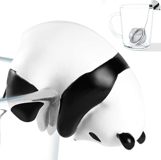 Calico Cat Tea Infuser Set - Adorable Tricolor Kitty Hook, Fine Mesh Loose Leaf Tea Steeper, Stainless Steel, No Mess, 1 Pack (Panda Lazily Lying on the Cup)