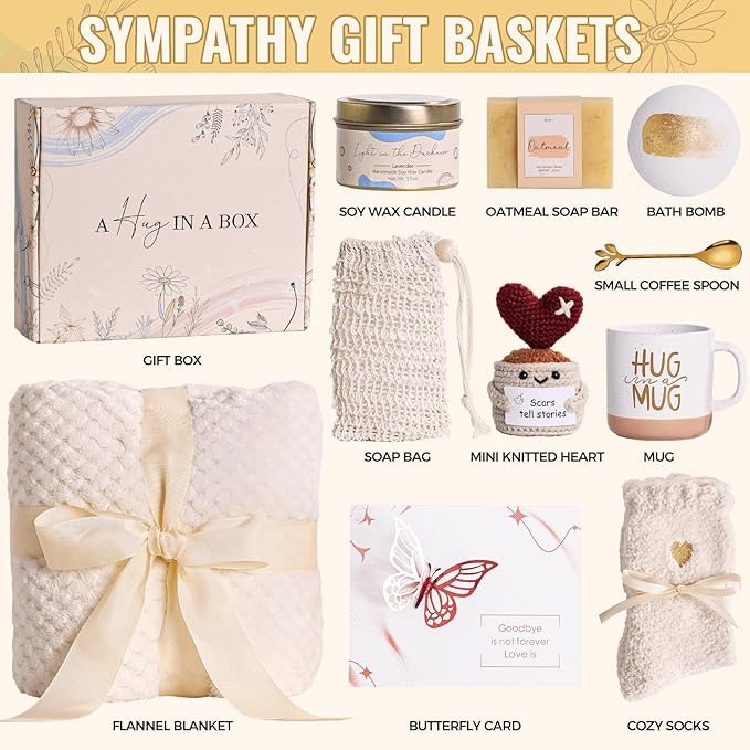 - Sympathy Gifts for Loss of Loved One: When words fall short, this carefully curated comfort box expresses your deepest condolences with warmth and care. Each item is selected to provide gentle solace during life's most difficult moments. Send this gift as a way to send a hug.
