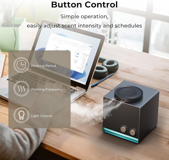 - EASY CONTROL FOR YOUR PERFECT AROMA โ Adjust your working time and intensity effortlessly with intuitive button controls. For ultimate convenience, customize schedules and settings remotely via the Aromadd APP, available for both iOS and Android. (Note: Functions like light adjustments are controlled via the buttons.)