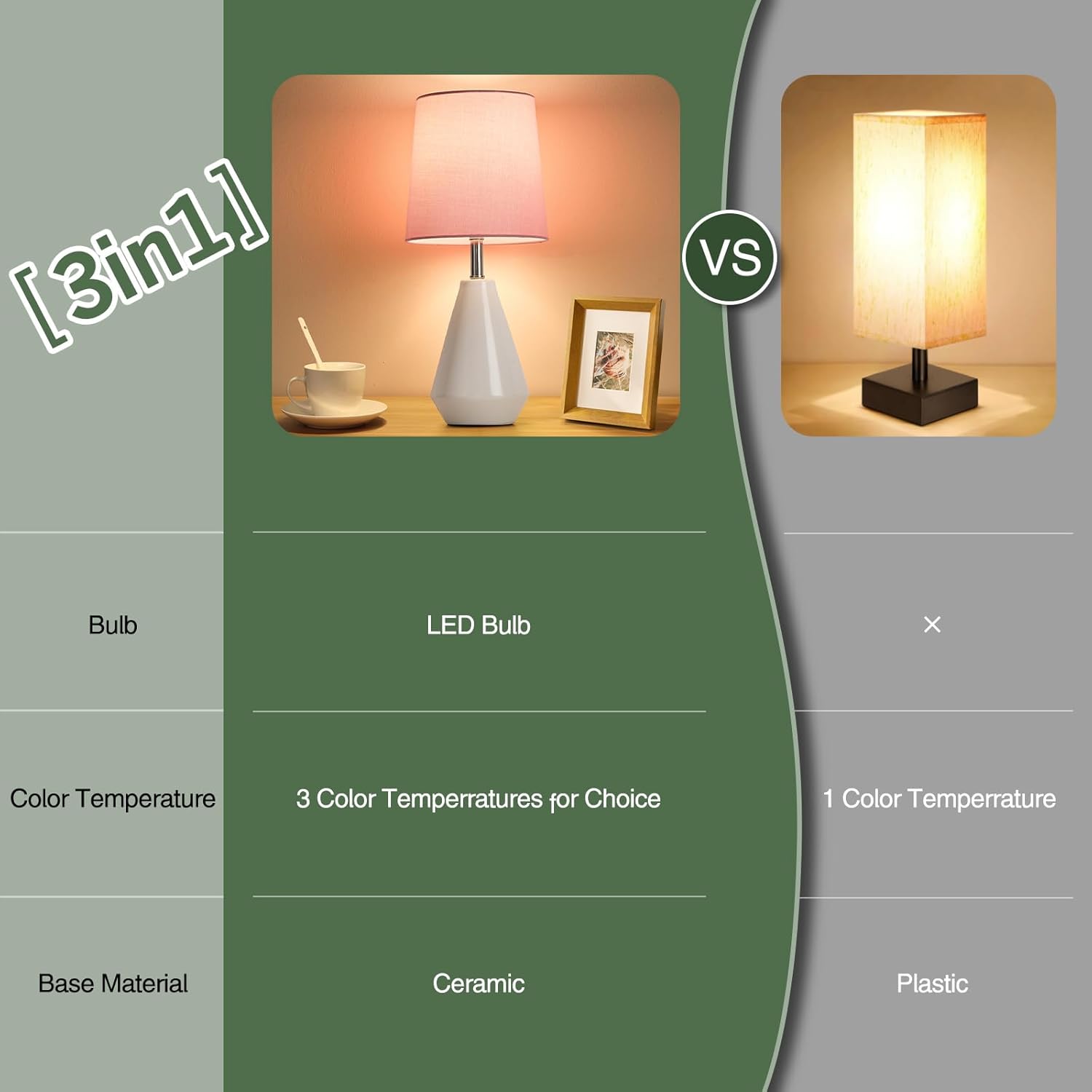 - 【Classic and Simple Design】--The small lamp adopts high-temperature sintered ceramic base and fabric lampshade, combining urban and rural areas to create a warm atmosphere. This lovely table lamp will blend into any home decor and add design to your room, making it a unique lamp no matter where it is placed and a great gift idea for friends and family.