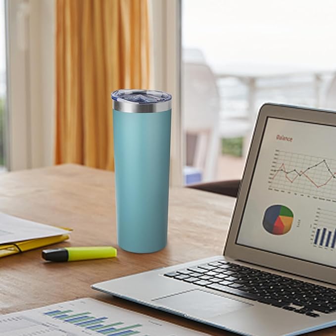 20 oz Skinny Tumbler with Lid and Straw,Stainless Steel Vacuum Insulated Tumbler Cup Double Wall Leak-proof Coffee Mug,Travel Thermal Water Tumbler for Home,Office,Outdoor (Glacier blue,8)