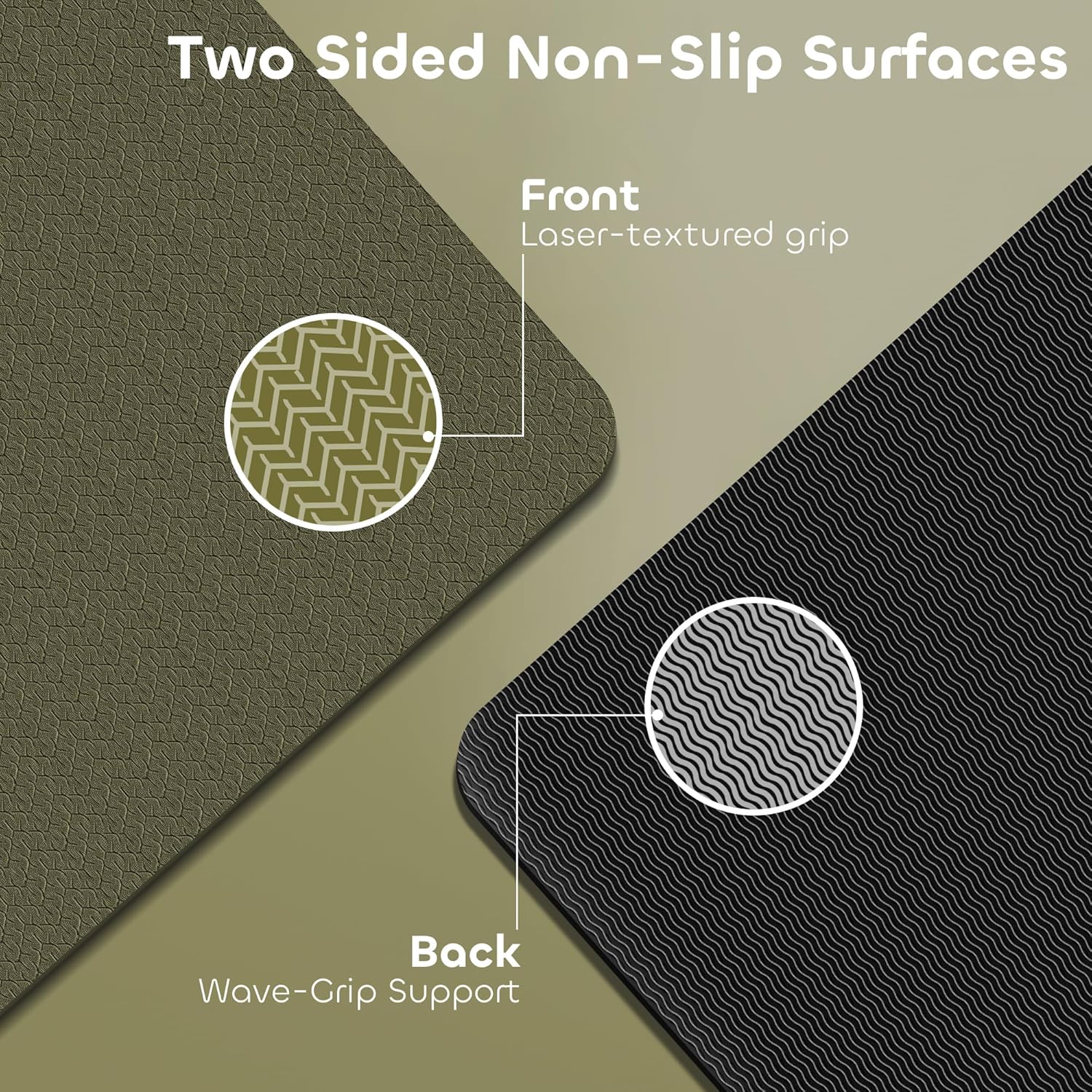 - Premium TPE Material with Dual-Sided Textures: Features snake patterns on the front and wave textures on the back for 360° non-slip grip during yoga, Pilates, or high-intensity workouts. The 6mm thickness provides cushioning for joints while maintaining stability.