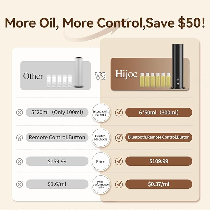 - 【Waterless Cold Air Diffusion for Pure Fragrance】Innovative cold-air technology converts essential oils into nano mist without water dilution, preserving the natural scent of oils. No need for frequent water refills—just add pure essential oils for a cleaner, longer-lasting aroma that fills your space.