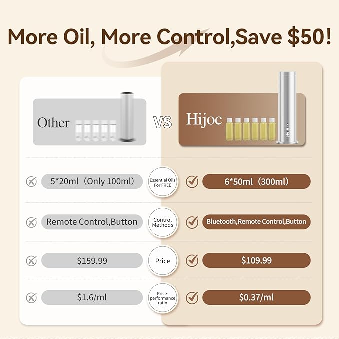 - 【Waterless Cold Air Diffusion for Pure Fragrance】Innovative cold-air technology converts essential oils into nano mist without water dilution, preserving the natural scent of oils. No need for frequent water refills—just add pure essential oils for a cleaner, longer-lasting aroma that fills your space.