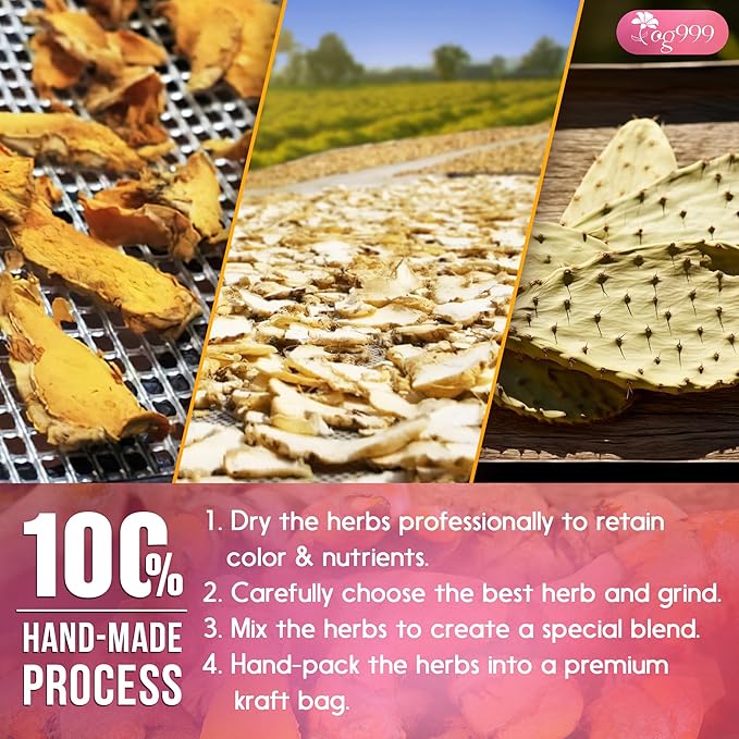 TOG999, Premium Blood and Sugar Balance Tea | 100gr - 3.5oz | 100% Natural Turmeric, Ginger, Cactus Nopal, Aloe Vera, Bay Leaf, Cinnamon & Hibiscus - Loose Powder Herbal Blend β Caffeine-Free Tea