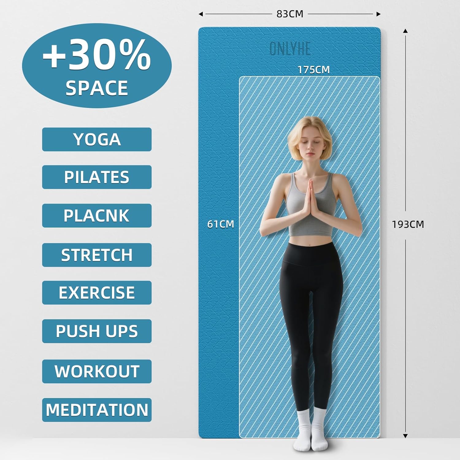 - 【ADDITIONAL SPACE DESIGN】193x83cm oversized surface (30% larger than standard mats) provides ample room for all yoga poses and dynamic movements