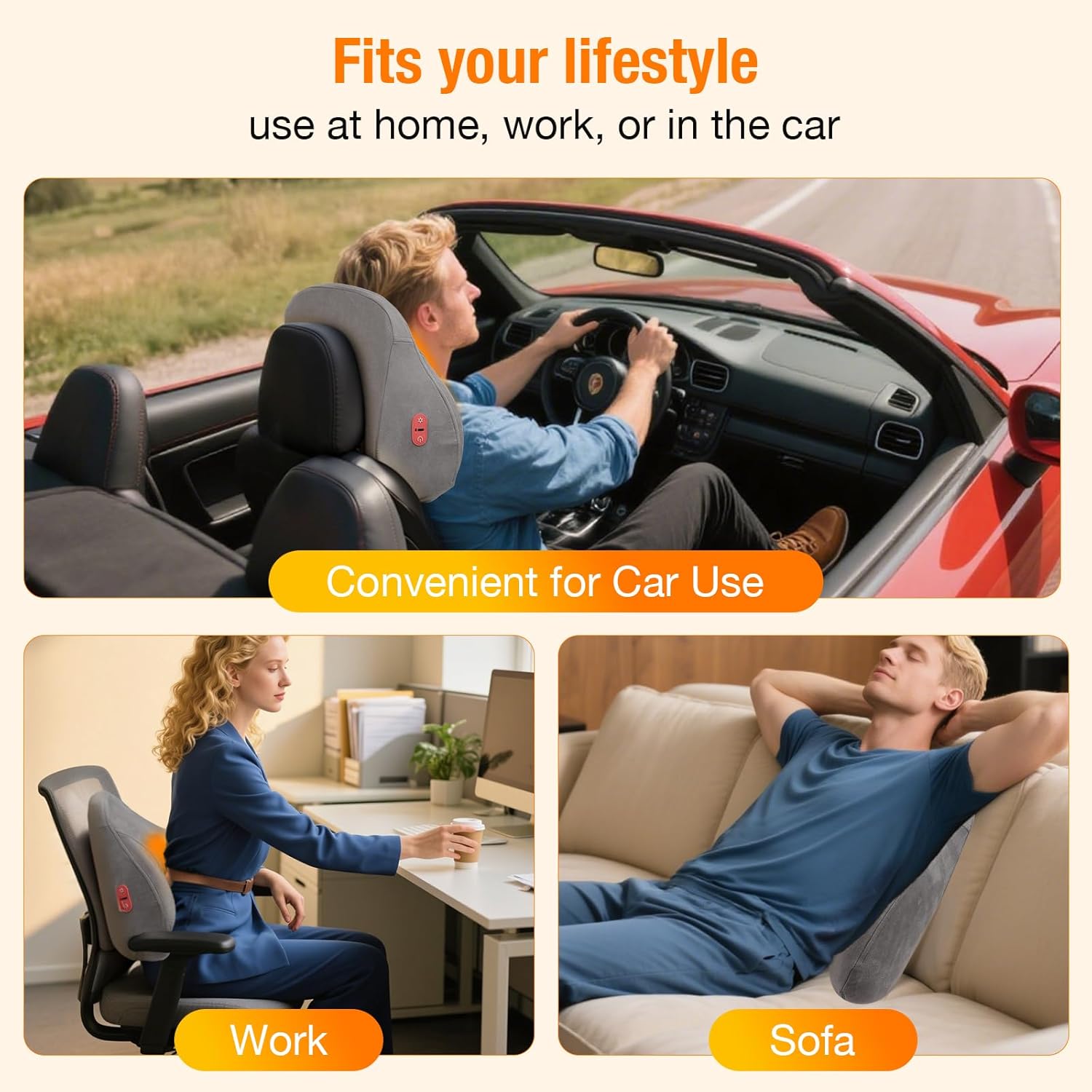 - 【Portable & Versatile】Designed for portability, this compact lower back massager doubles as a convenient back massager for chair, adapting to any seating—couch, office, car seat, or recliner—for relief on the go.