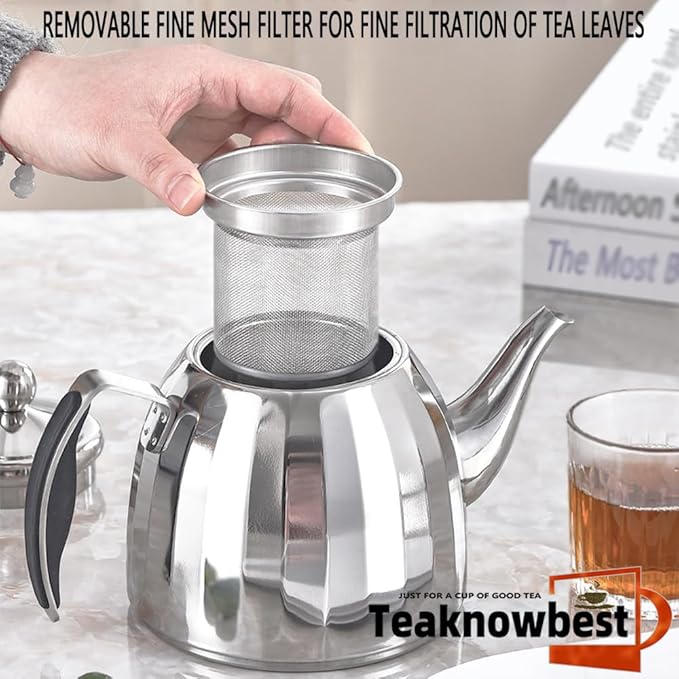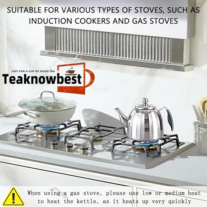 - 【Effortless Cleaning & Universal Stovetop Use】;Dishwasher-safe stainless steel teapot resists stains and odors. Compatible with most induction cooktops (post-2015). Includes: steel teapot, removable tea strainer, and measuring spoon. Simplify your ritual with this easy-clean loose leaf tea pot