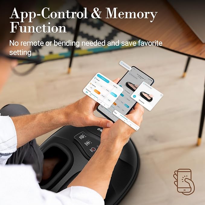 - Smart App and Panel Control:The upgraded version of the smart foot massager for Neuropathy Pain Relief not only allows for control through a control panel, but can also be controlled through a smartphone!You can DIY and save your favorite settings to be ready for the next use at any time, putting your ideal feet massage within reach of your fingertips. Note: Remote control not included.