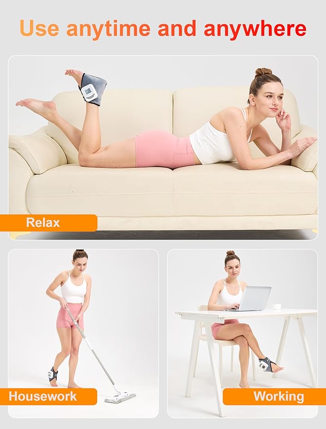 - Ergonomic & Portable Design: Lightweight and easy to use, this portable massager wrap snugly around your left or right ankle for hands-free relief anytime, anywhere. Super soft material for your ultimate comfortable. No wires, convenient use for home, office, travle or on-the-go