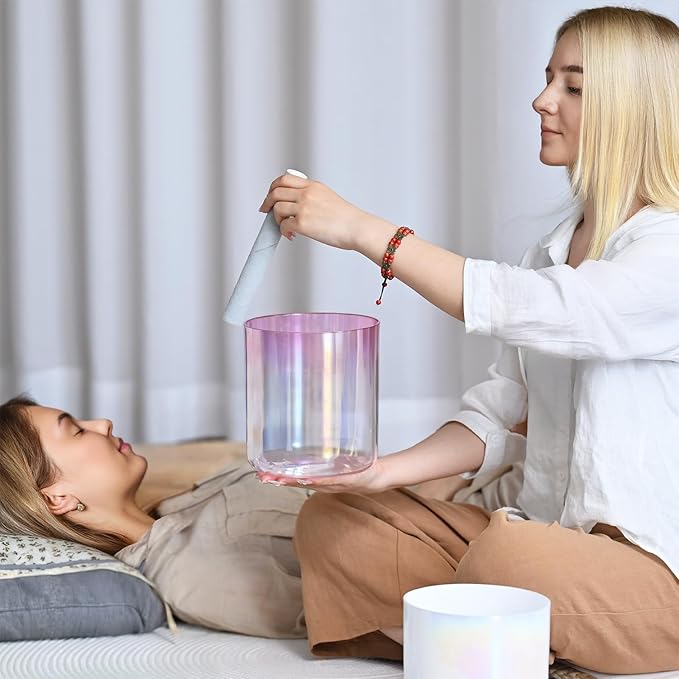 - Stunning Sound: The material is high pure quartz crystal, the purity is more than 99.99%. It makes the crystal singing bowl has good resonance, produces clear, harmonious, deep, and graceful sound