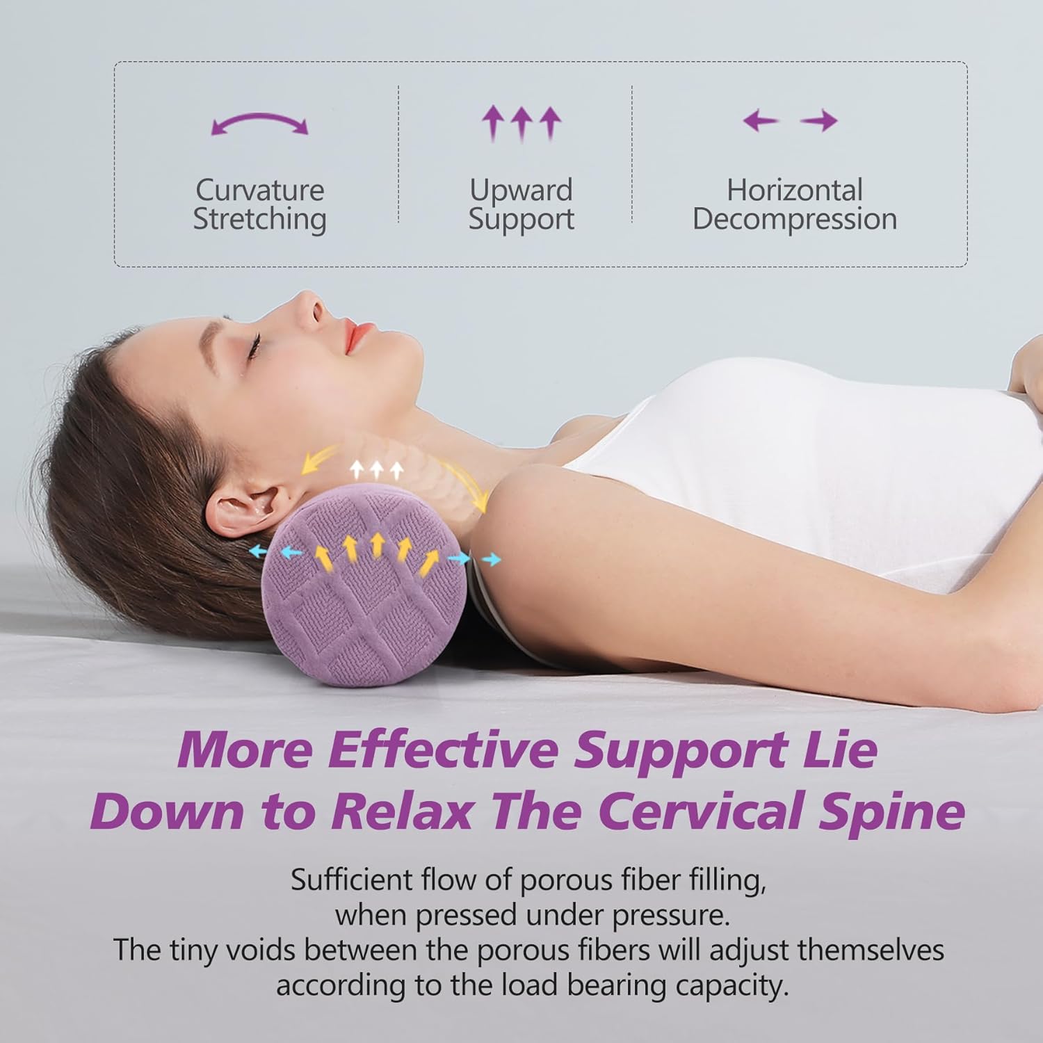 - 【 Ergonomic Cylinder Pillow 】 Our round cervical pillow for neck pain is ergonomically designed to help provide a therapeutic sleep posture to relieve or prevent head, back, neck, and shoulder pain caused from uncomfortable sleep and poor spinal alignment. . Perfect curvature helps the vertebrae stay relaxed, keeps neck and shoulders aligned, and maintains the natural curvature of the spine, so the neck traction pillow can be used as a posture pillow to adjust cervical curvature.