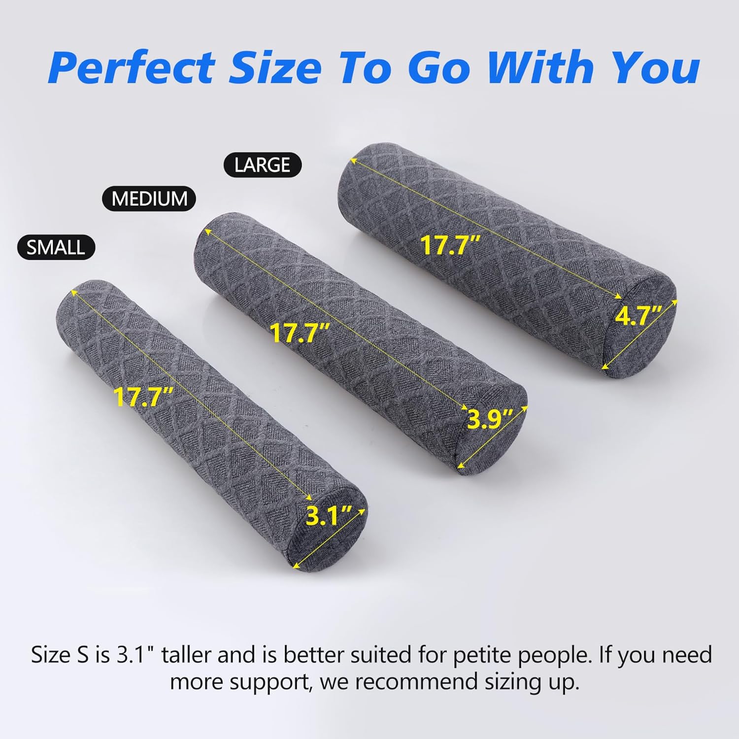 - 【 Multiple Uses Round Bolster Pillow 】 I'm pretty sure you need it because it works in every scenario. Whether sleeping or working, neck support pillow is indispensable. Put it on your waist when sitting on the sofa watching TV, and put it behind your neck when you are working. It can also be used as a yoga pillow to relax your calf muscles.