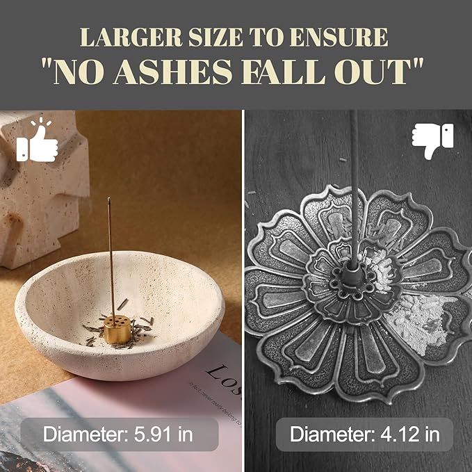 - 【Catch All the Incense Ash】The wider 5.91" diameter makes it catch ash easier.The surface of the incense burner is smooth and washable, very easy to clean.Can be widely used in living room, bedroom, study, meditation room, yoga room, etc
