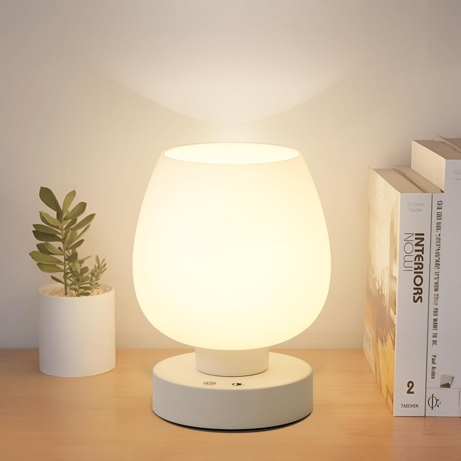 Cordless Portable Touch Bedside Table Lamp - Rechargeable Modern Small Table Lamp with White Glass Shade, Stepless Dimmable & 8 RGB Colors & Memory, Desk Lamp for Nursery Bedroom Nightstand, Gifts