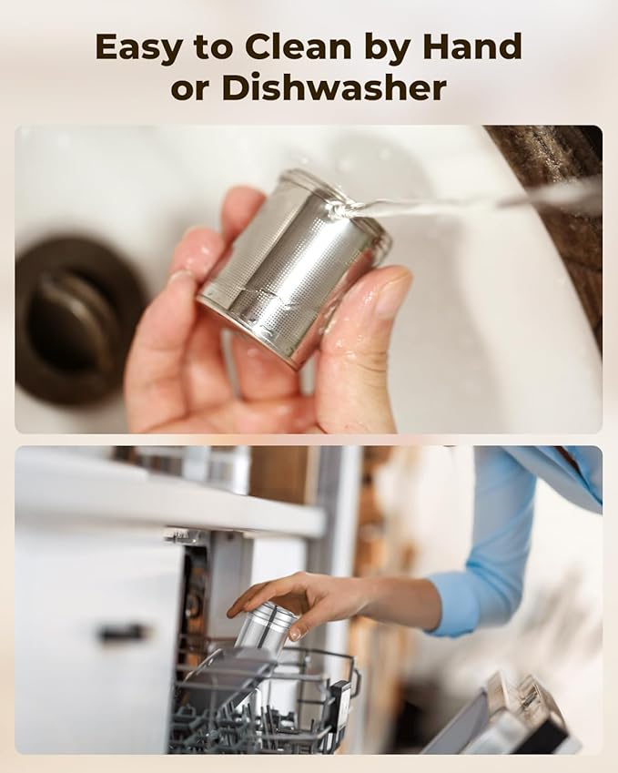 - Easy to Use & Clean: Our updated slim threaded lid screws on effortlessly, ensuring a tight, secure seal to lock in all tea particles— leaving no particles out of the top during brewing! After use, these loose tea strainers clean up quickly with water or in the dishwasher. Plus, each tea steeper includes a mini drip tray to rest on, preventing spills and keeping surfaces tidy after brewing