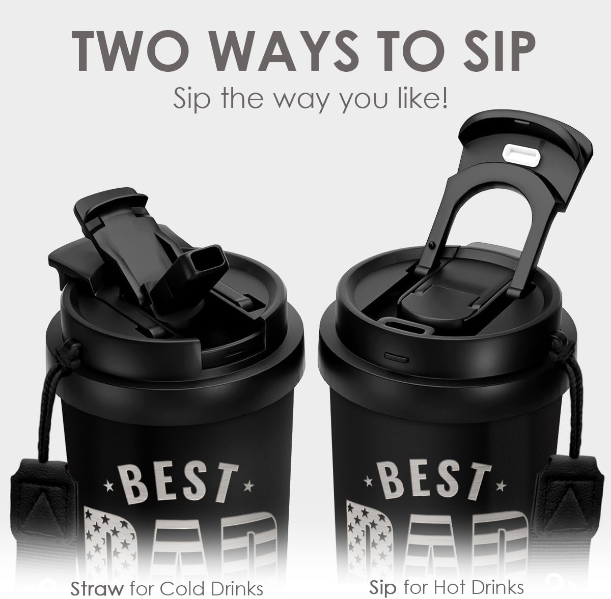 Dad Tumbler from Daughter- Stainless Steel 2-in-1 Lid Coffee Tumbler 18 oz, Best Dad Ever Insulated Travel Mug Gift for Men Husband Dad, Birthday Christmas 4th of July (American Flag)