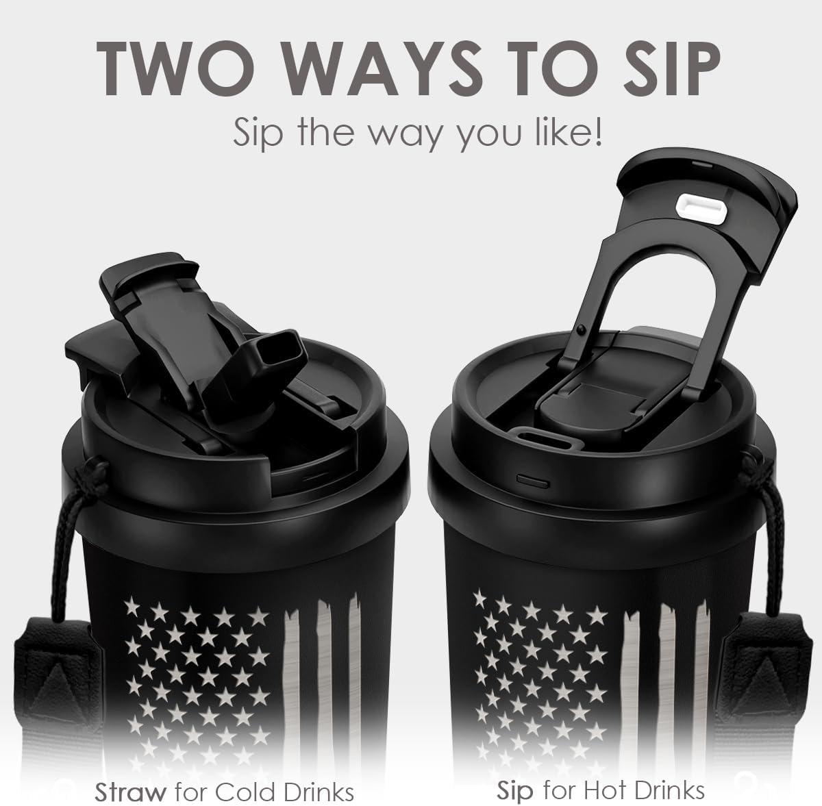 American Flag Tumbler - Stainless Steel 2-in-1 Lid Coffee Tumbler 18 oz, Patriotic Insulated Travel Mug Gift for Men Husband Dad, Birthday Christmas