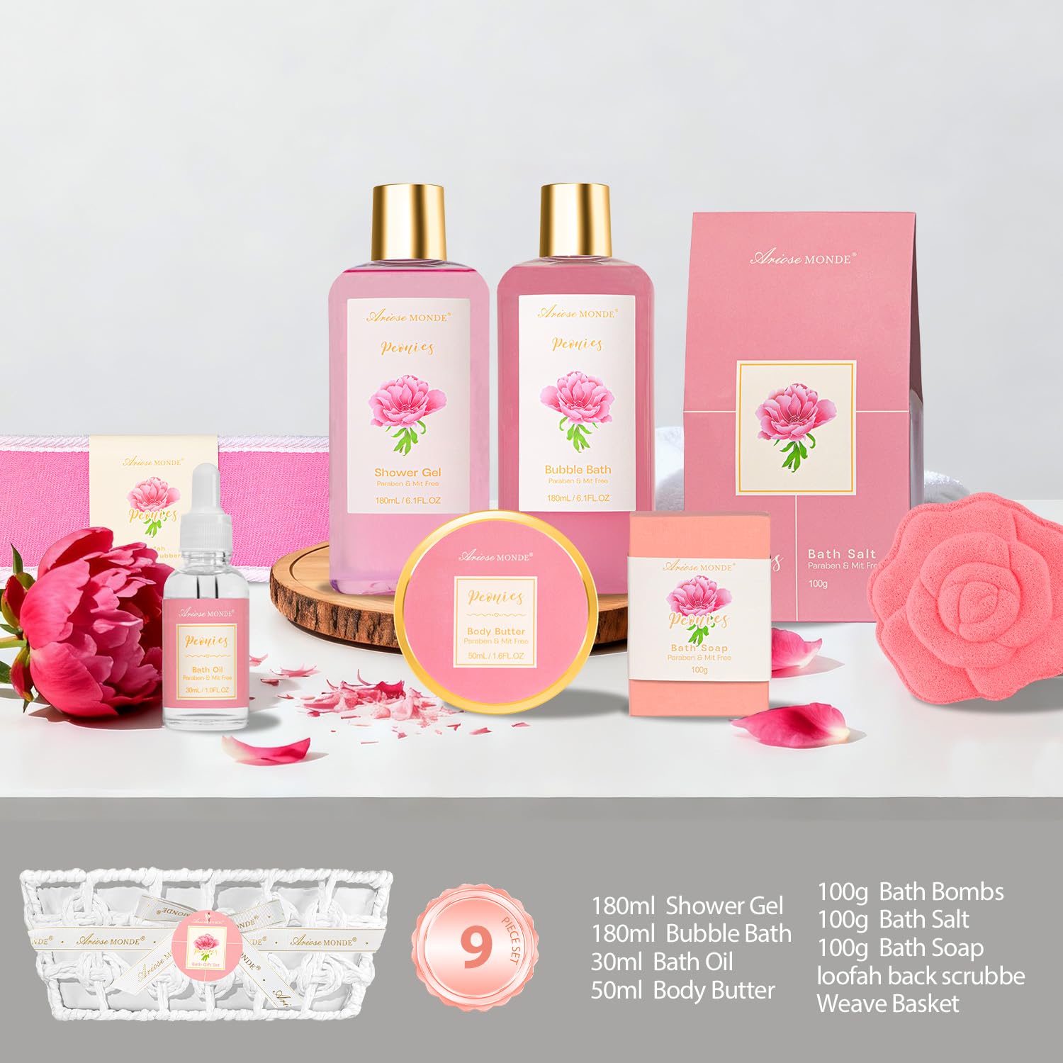 - 【Luxurious Peony Scent Experience】Indulge in the romantic and uplifting fragrance of blooming peonies. This floral spa gift basket creates a calming and pampering aromatherapy experience, helping to relieve stress and elevate your mood for the perfect self care retreat