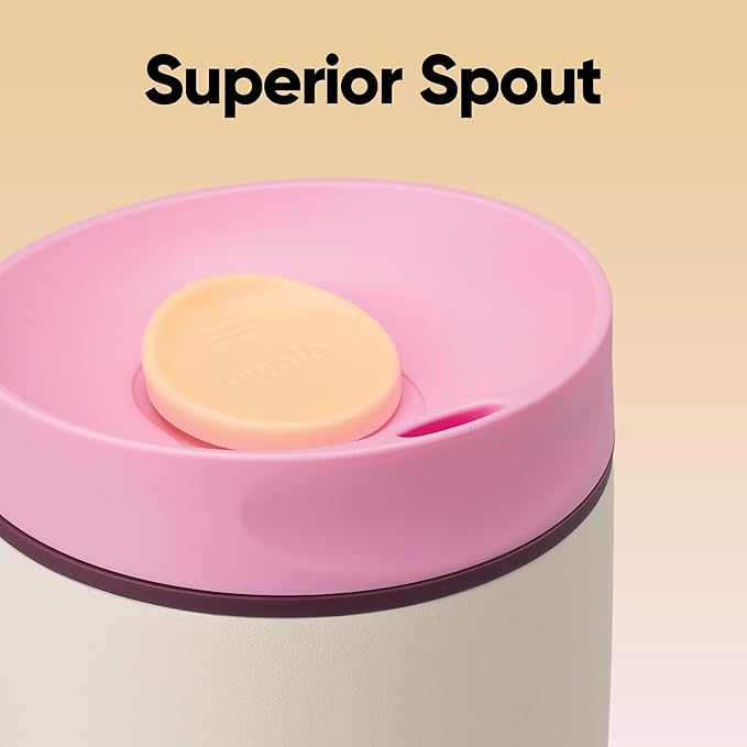 Owala SmoothSip Slider Insulated Stainless Steel Coffee Tumbler, Reusable Iced Coffee Cup, Hot Coffee Travel Mug, BPA Free 20 oz, Pink/Tan (Daybreak)
