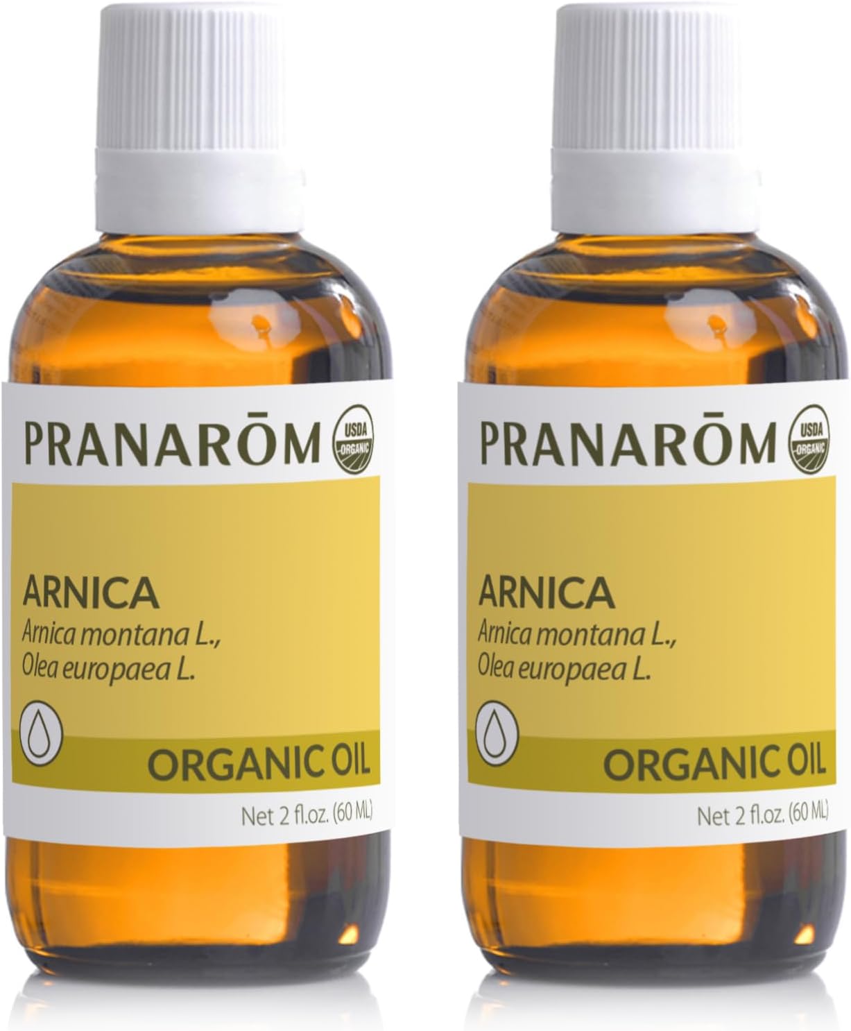 Pranarom - 2 Pack - USDA Certified Organic French Arnica Virgin Plant Oil - 2 fl oz Glass Bottle Each - Massage Oil for Body, Relaxing, Soothing for Joints & Muscles