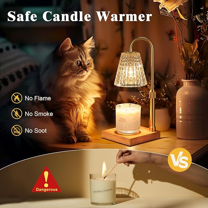 - 【Safe and Practical Candle Light Warmer】Hong-in Vintage candle warmer lamp with timer is a perfect alternative to lighting candles! This lamp candle warmer uses to melt from the top down, emitting scent in minutes. Unlike traditional burning, its even and consistent heat gently releases the scent throughout the room, leaving your house smelling amazing! No flame, no smoke, no indoor pollution, reducing the risk of fire caused by lighting candles.