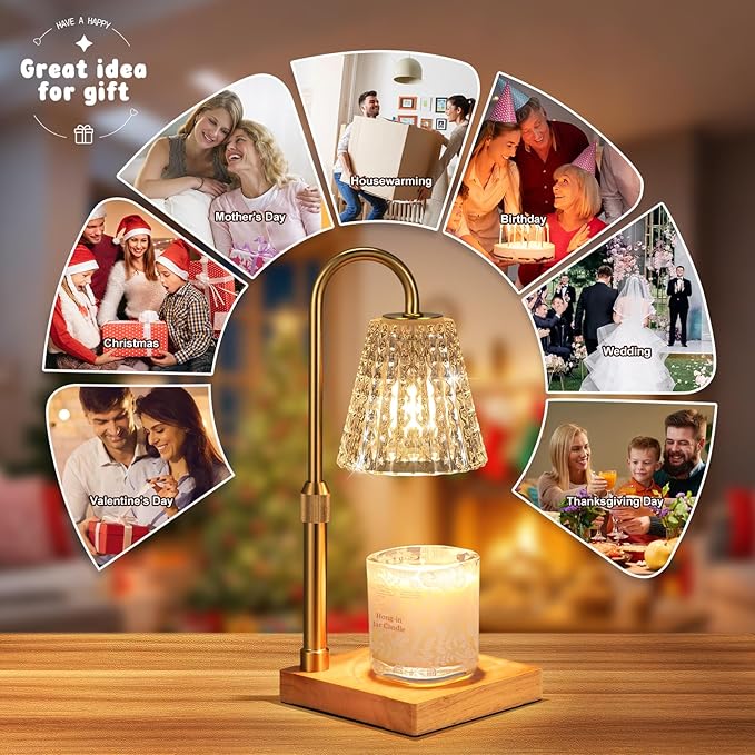 Crystal Adjustable Height Candle Warmer Lamp with Timer Dimmer,Birthday Gifts for Women Mom,House Warming Gifts New Home Room Decor,Vintage Wax Warmer for Scented Wax Jar Candles