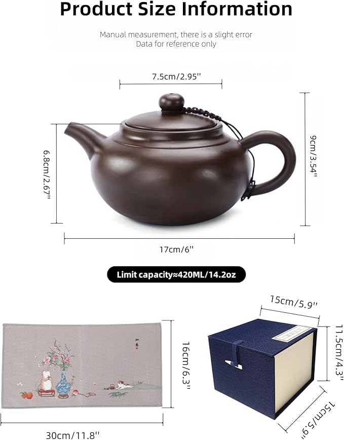 - Material: zIni clay, lead-free, cadmium-free. The teapot is fired at 1150℃ Celsius with warm color and hard texture.