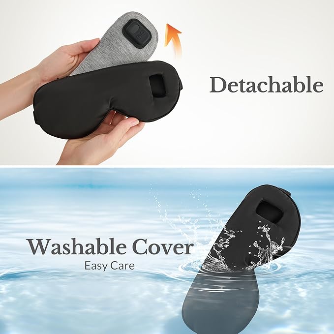 - Built-in Rechargeable Battery: Features a built-in rechargeable 1000mAh battery with flame-retardant wrap for daily use. Includes Type-C cable and T-Head charging adapter for versatile charging (USB/computer/power bank). Ideal for travel, home use and daily relief. Tips: Please use the provided original charger for best results. This eye sleep mask made with a washable, detachable silk cover with breathable lining for long-lasting comfort.