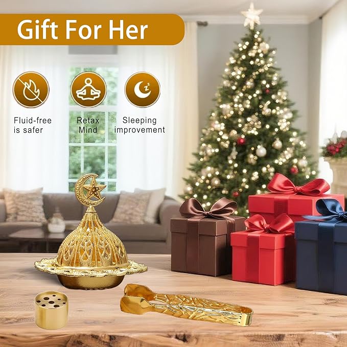 - 【Exquisite Design】Featuring intricate patterns and a luxurious gold finish, this incense burner set adds an authentic vintage touch to your home decor