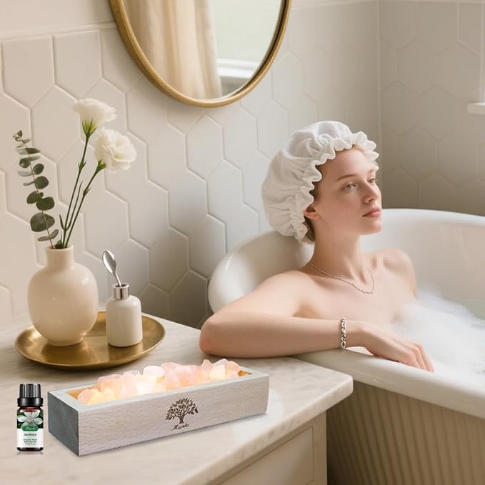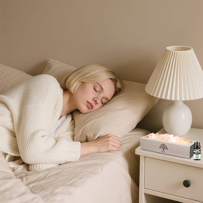 - Cozy Ambient Glow: The rustic wooden base features a built-in warm light that highlights the salt's natural texture, creating a zen atmosphere ideal for chilling out, yoga sessions, or creating that perfect Instagram-worthy relaxation vibe.