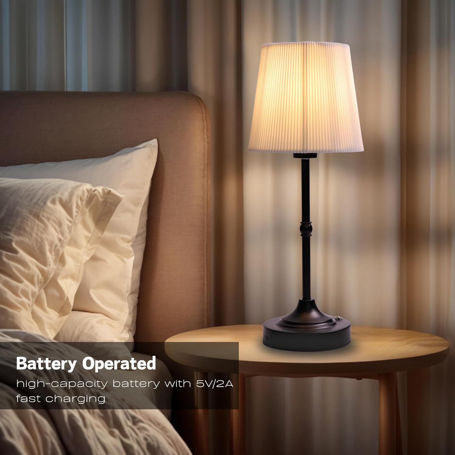 - Rechargeable Long-Lasting Battery: The Cordless Lamp has a built-in high-capacity lithium battery with 5V/2A fast charging (includes dedicated cable). Provides up to 20 hours on low brightness, freeing you from power outlets