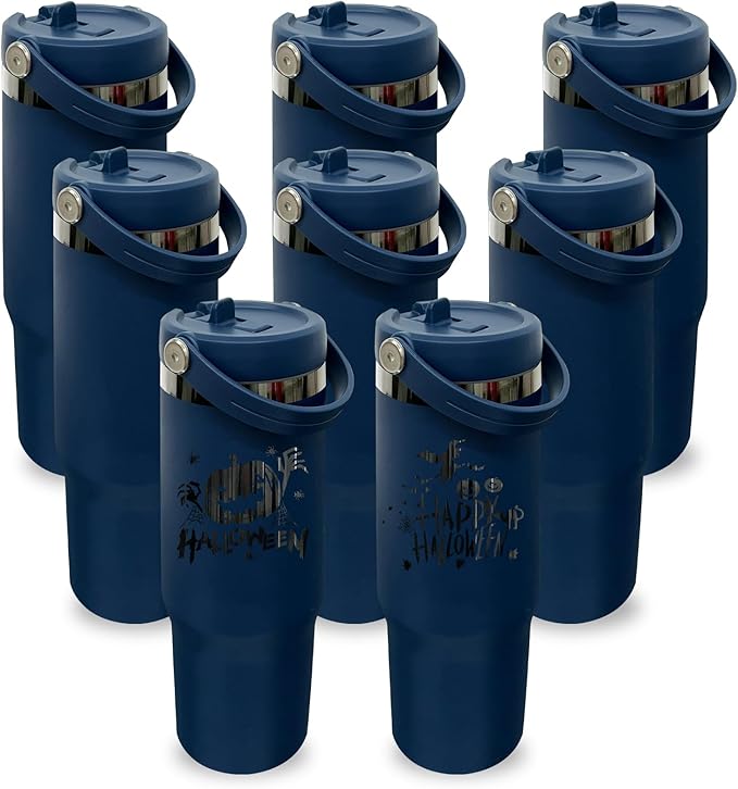 30 oz Tumbler with Handle, Double Wall Vacuum Insulated Tumblers with Flip Straw, Coffee Mug 30oz Powder Coated Cup for Hot and Cold Drinks(Black Plated, Navy,8 pack)