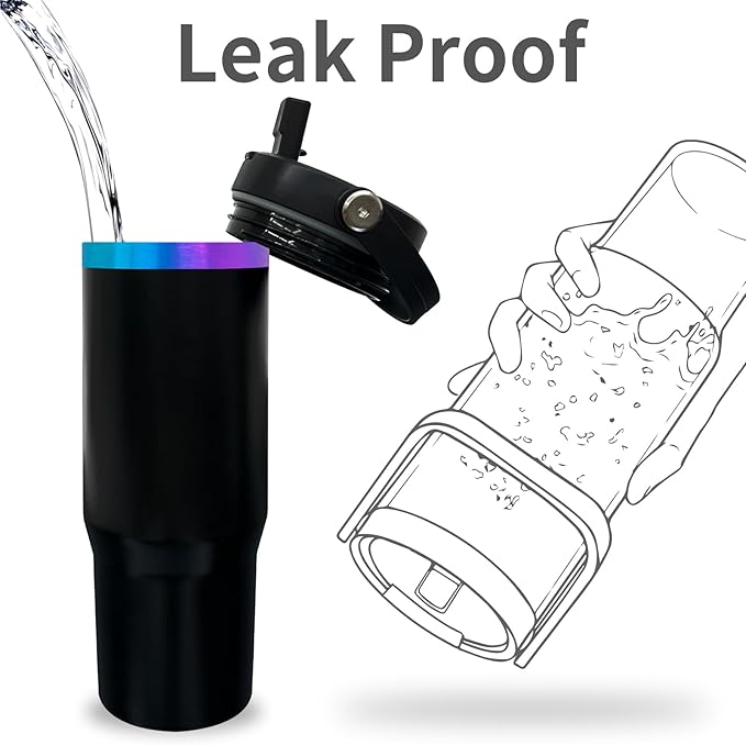 - Spill & Leak Proof: If you're looking for an insulated coffee tumbler with straw that won't leak or spill, look no further! Our insulated water bottle's folding straw lid design stops leaks and spills when hitting bumps on the road, or when taking it on a jog