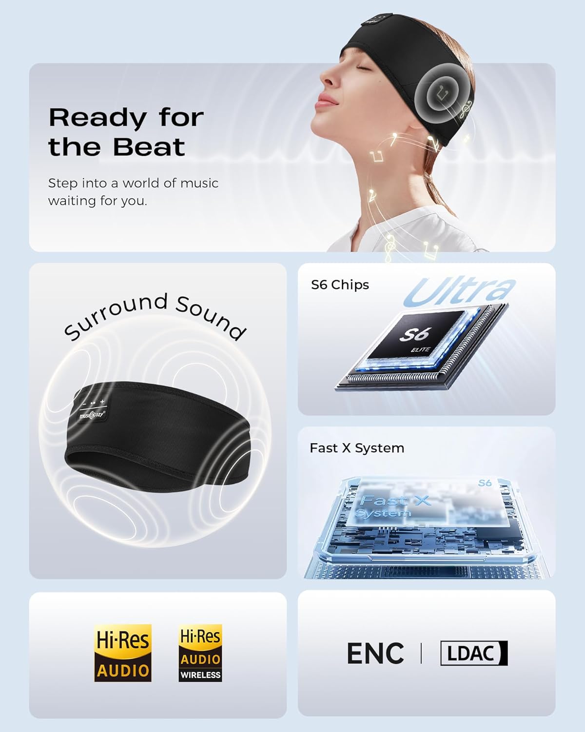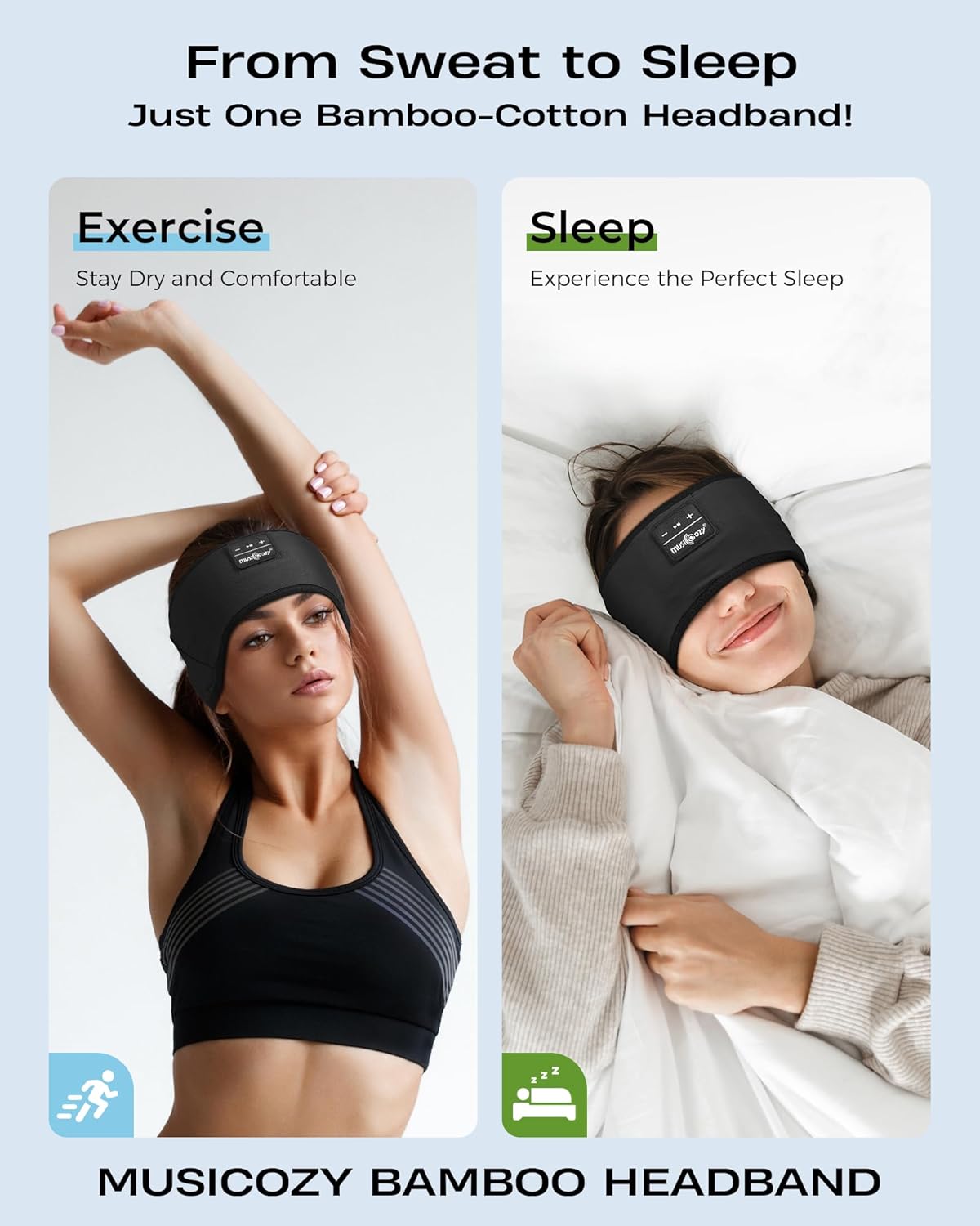 - Sleep Mask & Bluetooth Headband - Enjoy the best of both worlds with the MUSICOZY Bluetooth headband that doubles as a sleep mask, providing light blocking and your favorite tunes for ultimate relaxation.