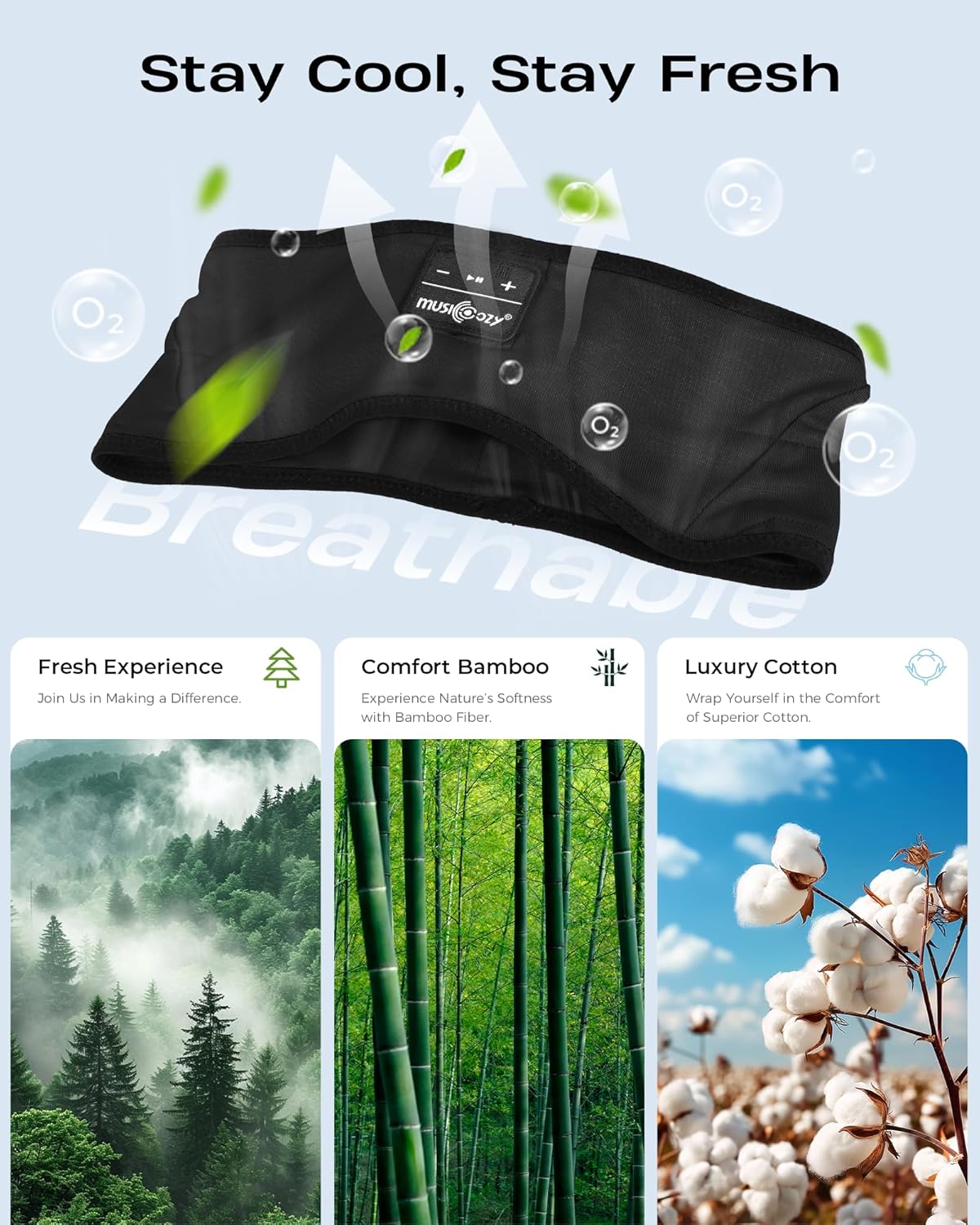 - The Future of Fabric - Experience the perfect blend of comfort and sustainability with our eco-friendly bamboo cotton material, which is soft, fragrant, and free from harmful chemicals. This innovative headband not only boasts natural biodegradability but simulates the refreshing air of a forest, enriched with high levels of negative ions. Enjoy the benefits of reduced fatigue, improved sleep quality, ensuring a fresher environment for your relaxation and workouts.