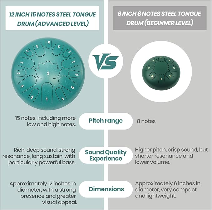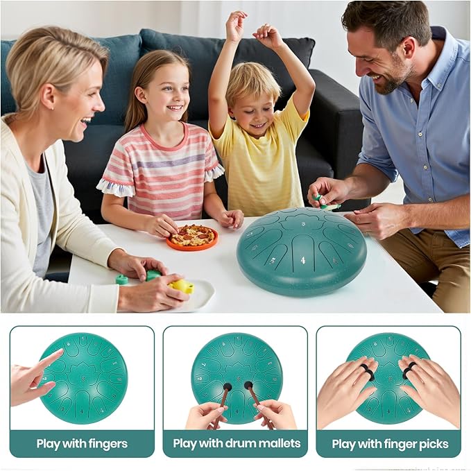 - LARGE MULTI NOTE: 12-inch Steel Tongue Drum has 15 notes for more songs. Suitable for adult hands and offers a different playing experience and is easy to learn.