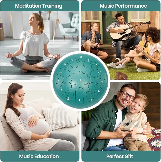 - BEAUTIFUL AND ETHEREAL TONE: The sound of the tongue drum is clear, calm and soothing. It is relaxing and pleasant. Create a peaceful atmosphere, let your emotions slowly calm down.