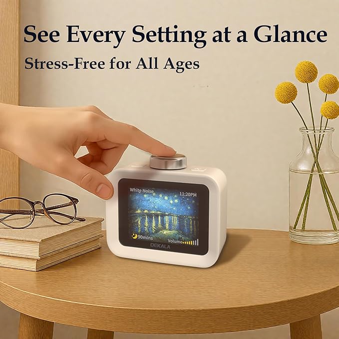 - 【Create Healthy Sleep ecosystem】 Build a screen-free sleep sanctuary with Dekala’s all-in-one ecosystem – no scrolling, just tap to play 30+ lab-tuned sounds (white/brown/pink noise) synced with dynamic sleep animations (campfire, stars) , adding 5-min to ∞ Timer, Customize playback duration or let it run all night.