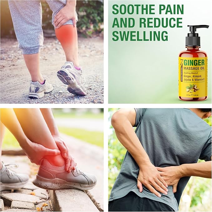 - ✅ CALM SORENESS & REDUCE SWELLING - Our Ginger Massage Oil leverages the natural soothing properties of ginger to effectively soothe soreness and reduce swelling. Rich in gingerols and shogaols, it promotes circulation and provides relief for sore, swollen areas.