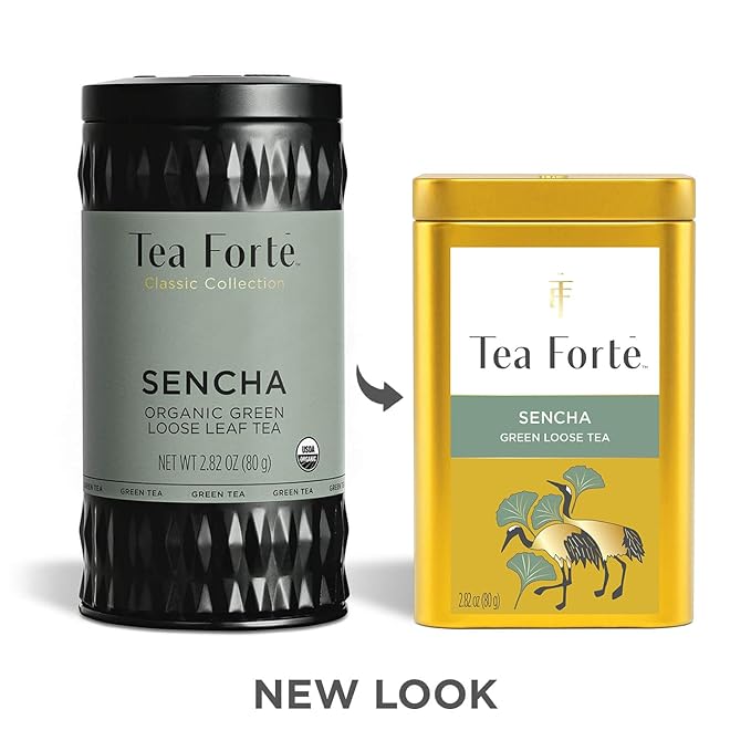 Tea Forte Sencha Premium Loose Leaf Caffeinated Green Tea Blend Canister, Makes 35-50 Cups