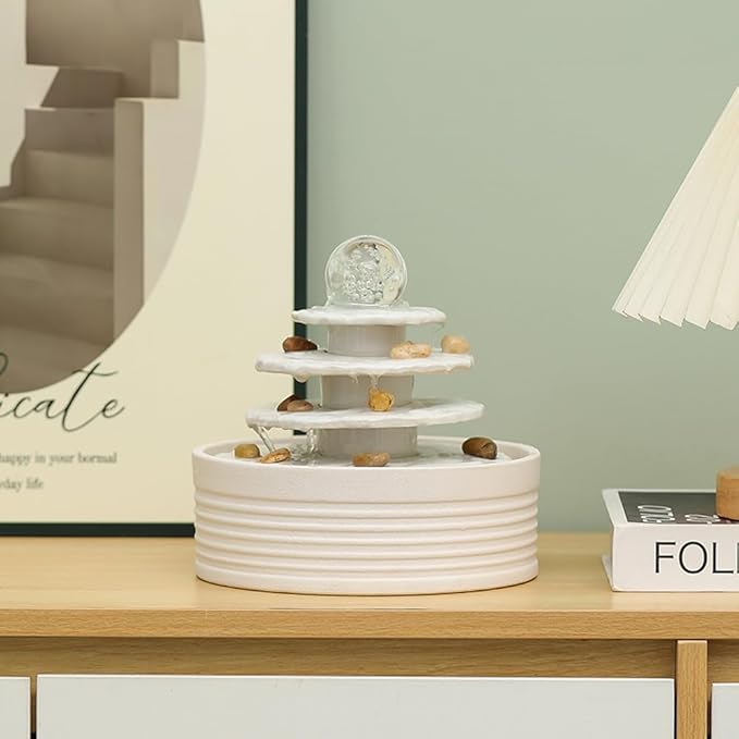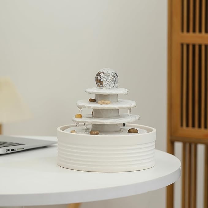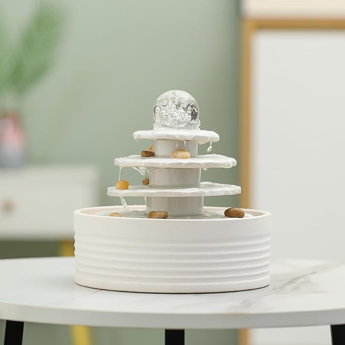 Outdoor and Indoor Ceramic Fountain Waterfall Water Feature Tabletop Home Office Kitchen Decoration (White)