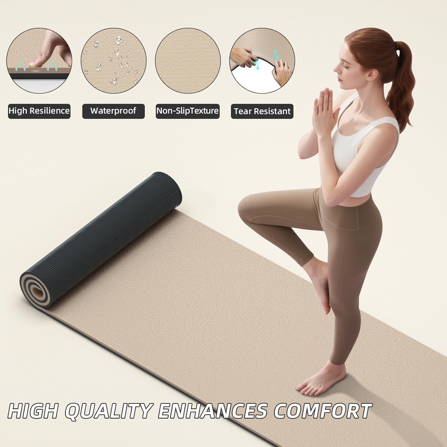 - Multi-Purpose: The durable TPE fitness mat ensures stability and balance, and is suitable for yoga, Pilates, weight training, and other ground exercises. Universal yoga mat for all ages (When the product is delivered, there may be some curling which is considered normal)