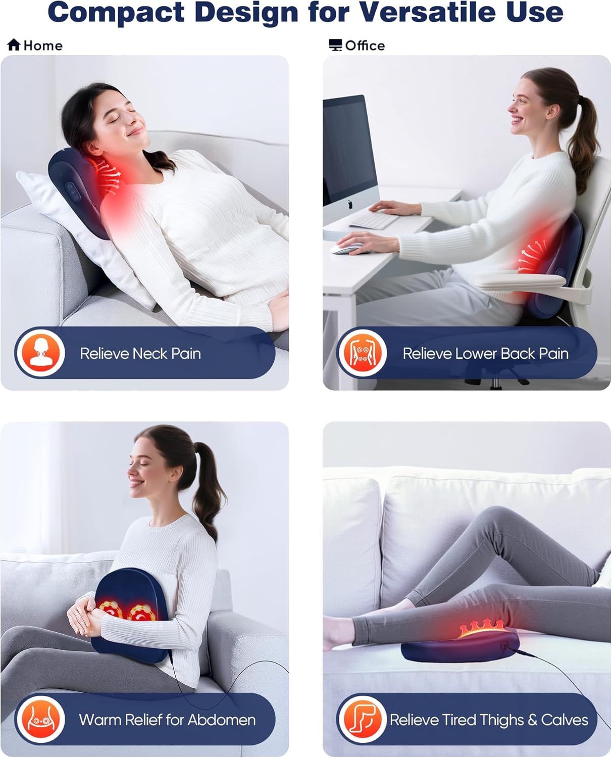 - 【Chair-Ready & Easy to Move – Perfect for Home or Office】 Lightweight and compact, this massager moves easily from room to room. A long power cord gives you placement flexibility, while the adjustable strap allows for stable, hands-free use on office chairs, recliners, or even beds.