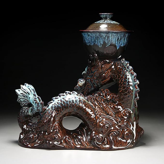 - Unique Appearance:This magic teapot has a traditional Chinese dragon base—symbolizing nobility, power, luck. Hand-glazed with a satiny smooth surface. It’s not just chinese tea set—it also holds significant ornamental and collectible value.