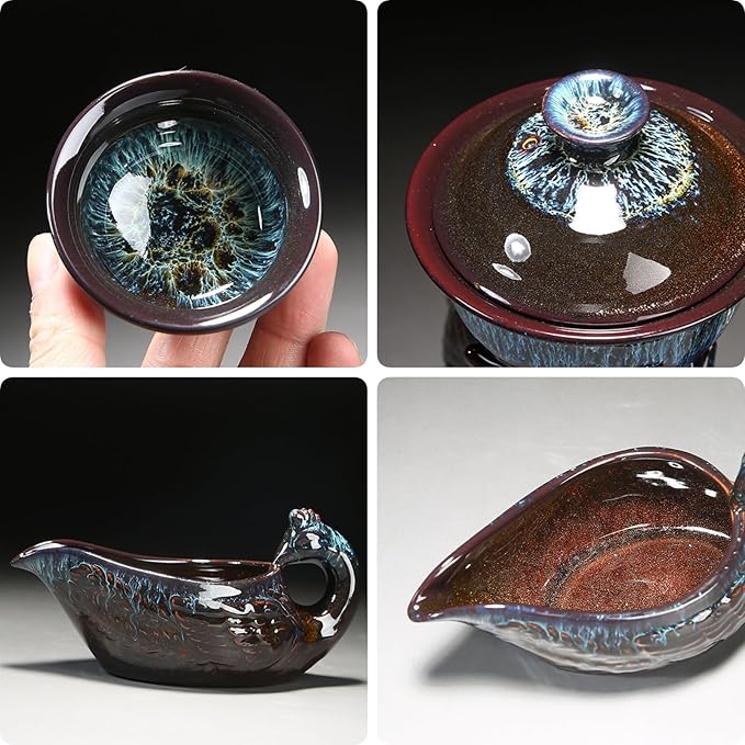 - Premium ceramic teapot and cup set: Twice fired at 800-1300℃ ensuring durability and unique glaze effects.Hand-glazed, each unique. Blending traditional craft and natural artistry, it’s both a teapot and striking decor.